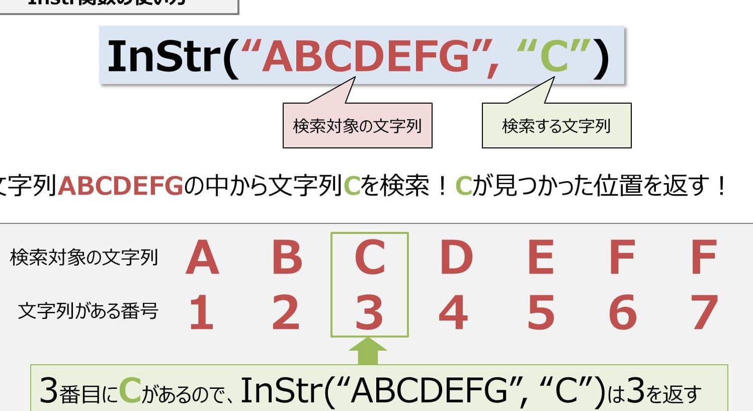 ExcelのINSTR関数は、文字列中の指定された文字列の位置を検索するために使用される関数です。INSTR関数は、検索文字列、検索開始位置、検索方向を指定することで、文字列中の指定された文字列の位置を取得することができます。具体的には、検索文字列が見つかった場合には、その位置を返し、見つからない場合には、0を返します。