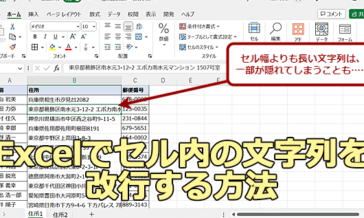 - これで、セルの幅を超えるテキストが自動的に複数行に折り返されます。