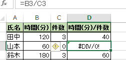 - #DIV/0!エラー:ゼロで割り算しようとしている場合に発生。ゼロで割らないように数式を変更する。