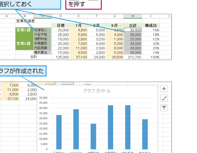 以下は、グラフ作成のショートカットキーを使用する方法です。
