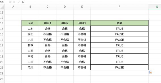 (C1の値が60以上なら「合格」、それ以外なら「不合格」を返す)