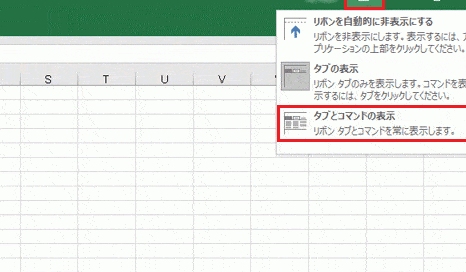 アドインやマが原因でExcelのメニュータブが表示されないことがあります。以下のような場合が考えられます。