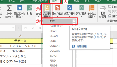 ASC関数を使用して全角数字を半角数字に変換するには、以下の手順に従ってください。