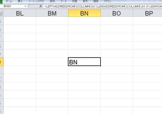 - 他のセルにペーストして、列番号をアルファベットに変換します。
