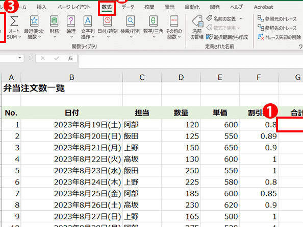 - AutoSumでは、選択された範囲の積が自動的に計算されます。