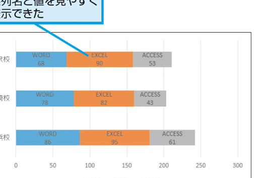 データ系列名を表示することで、グラフの各データ系列の名前を凡例として表示させることができます。