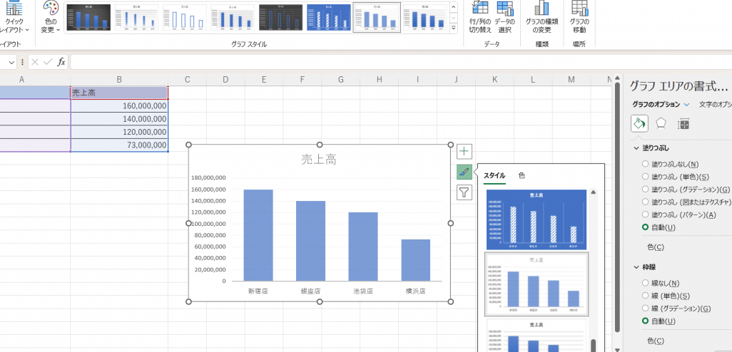 Excelのグラフのデザインを変更する手順