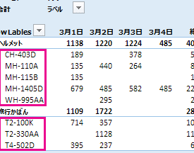 - Excelシートで、ピボットテーブルの元になっているデータがあるワークシートを開きます。