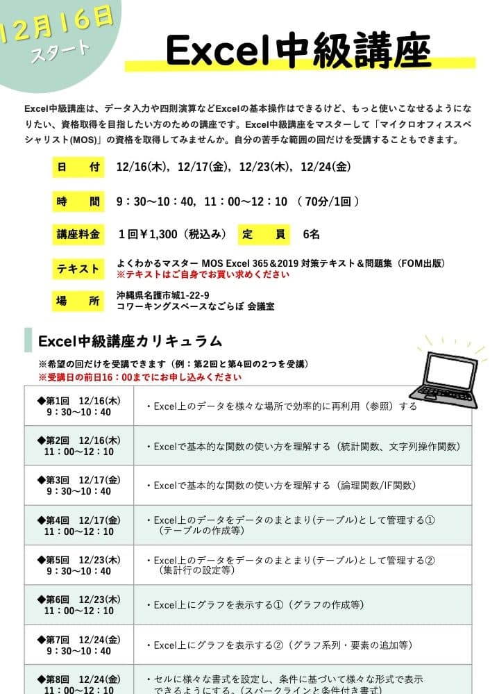 Excel中級者向けのスキルアップ講座では、関数活用術を徹底解説します。すでにExcelの基本操作には慣れているユーザーが、より効率的にデータを処理するためのテクニックを学ぶことができます。この講座では、IF関数やVLOOKUP関数などの代表的な関数の使い方から、複数の関数を組み合わせた高度な計算方法までを紹介します。また、関数を用いたデータの整理や分析方法も解説し、実践的なスキルを身につけることを目指します。Excelを使いこなすことで、仕事の生産性向上やデータ分析の向上が期待できますので、この機会にぜひご参加ください。