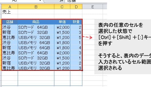 Excelでデータ範囲を選択するショートカットキーは?