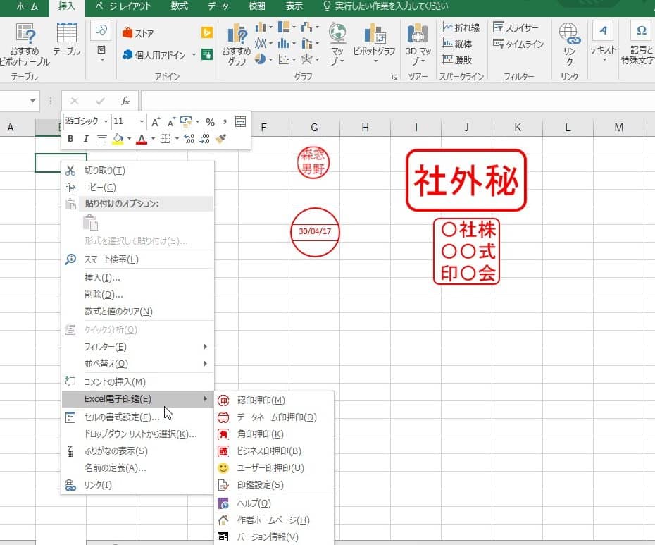 Excelで電子押印をするにはどうすればいいですか?