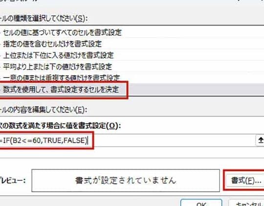 | 式を使用した書式設定 | 指定した式が真の場合に書式を適用します。 |