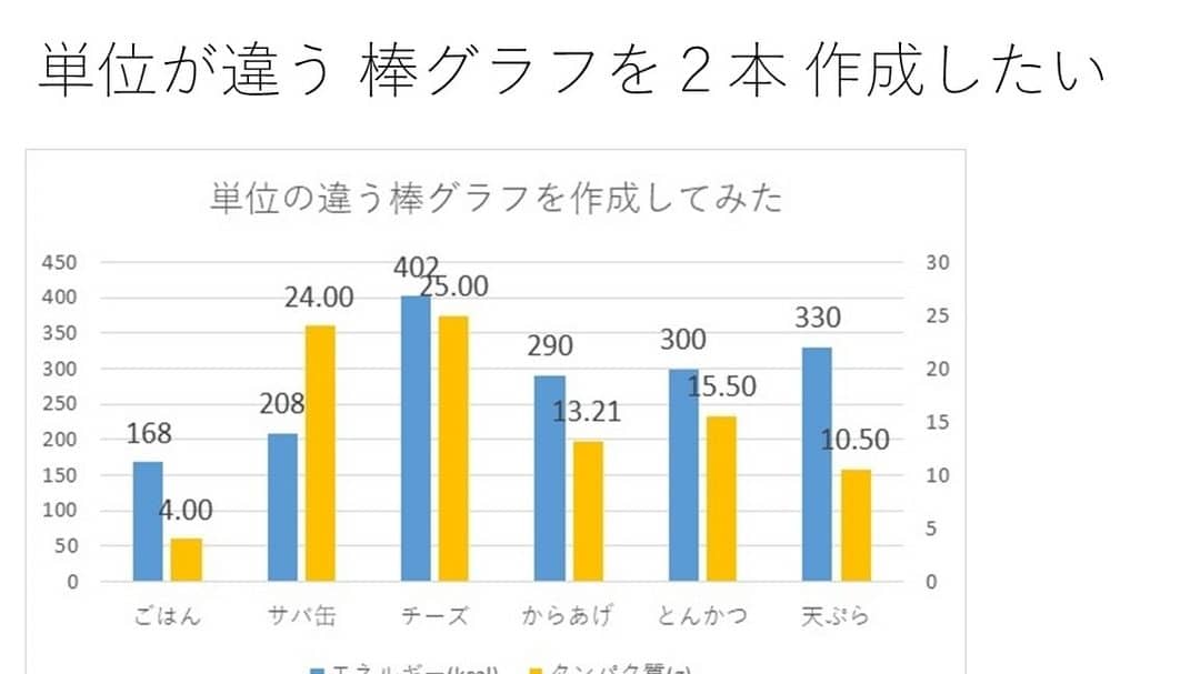 Excel棒グラフ2軸|異なる単位のデータを比較