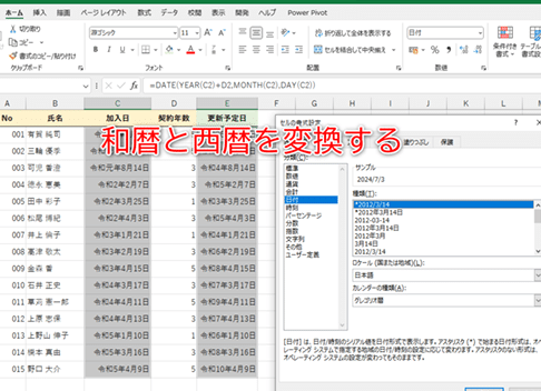 Excel西暦和暦変換関数:西暦を和暦に変換!関数と使い方