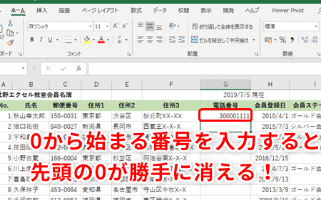 エクセルで電話番号を入れると0が消えるのはなぜ?
