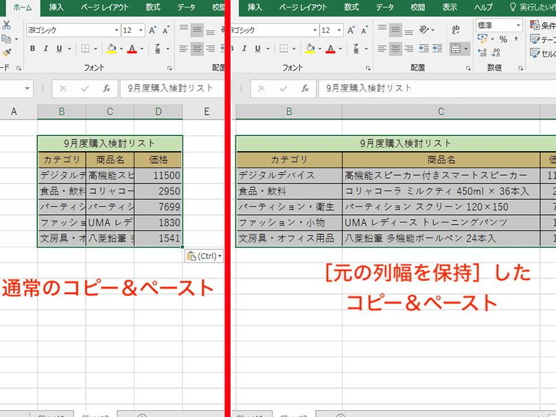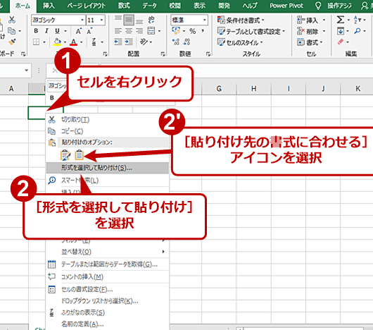Excel貼り付け時に書式を合わせる方法|体裁を維持